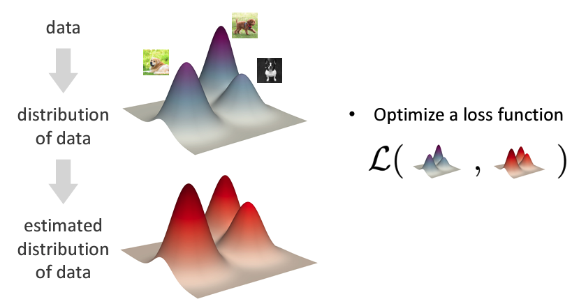 • 在通过一系列的方法,得到一个估计(estimated)的分布,这个分布的评估是通过损失函数\(L\)来进行的