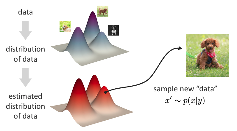 生成式模型就是要去寻找数据的潜在分布\(p(x)\),来生成与真实数据分布相似的样本